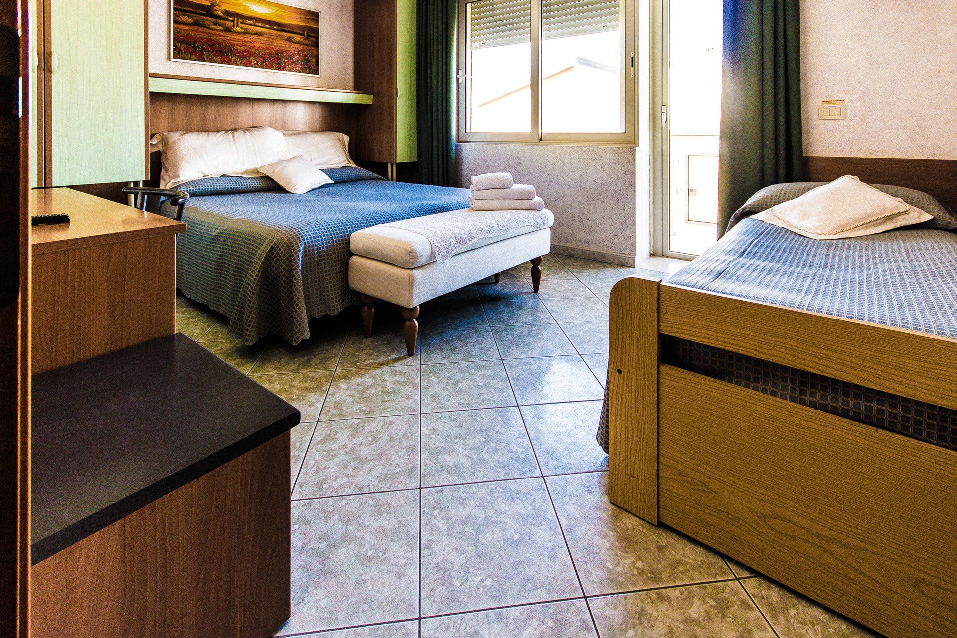 Das Hauptmerkmal unserer Einzelzimmer ist das französische Bett. Letzteres, etwas kleiner als ein Doppelbett und nur für eine Person geeignet (kann aber auch zu zweit genutzt werden!) bietet Ihnen ein Höchstmaß an Komfort.