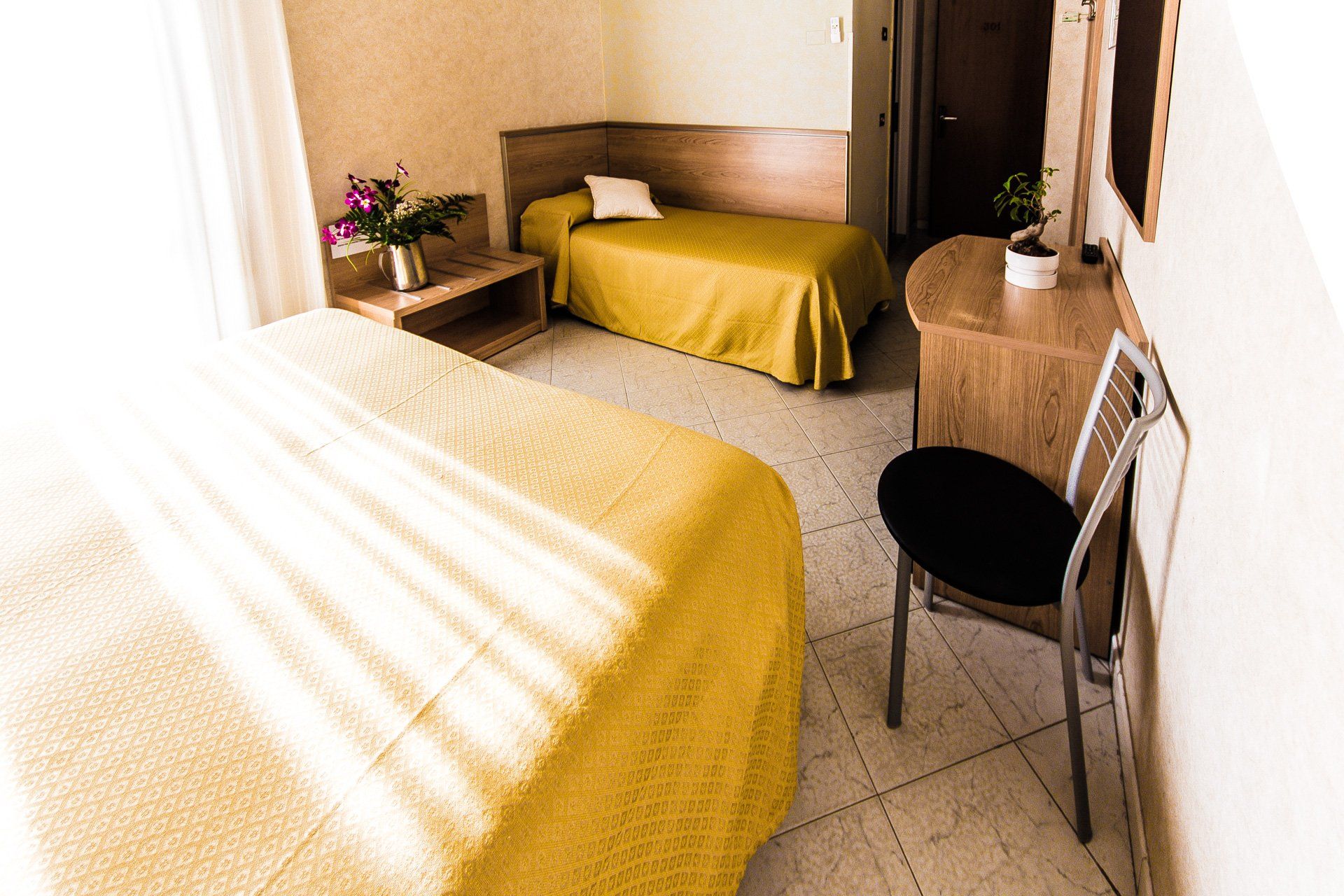 Darüber hinaus verfügen alle unsere Einzelzimmer über eine kleine Terrasse und ein eigenes Bad mit Fenster sowie über alle anderen Annehmlichkeiten der größeren Zimmer.
